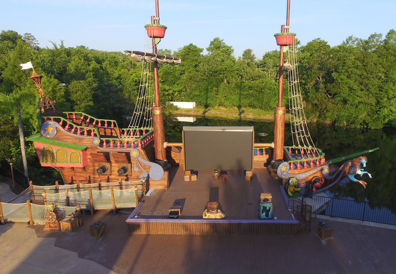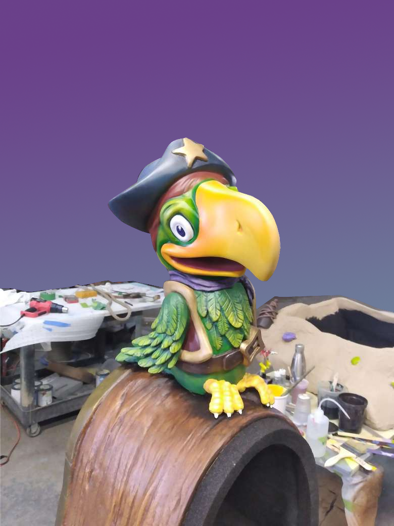Another service we are very strong in is the complete creation of new experiences from conceptual stage, through virtual walkthroughs to final fabrication and installation. This can be seen best by our latest installation we created for Give Kids The World Village, a resort in Kissimmee dedicated to children suffering life threatening illnesses. SteamLabs was selected to do a completely new design of the Serendipity, a 70′ pirate ship at the resort’s pool area location. Lead Designer and Company Founder, Michael Ingrassia was chosen to design the new ship, oversee all phases of demolition and construction of the new ship, as well as manage his team in the creation of many props and characters that adorn the ship and the stage area. SteamLabs was also contracted to completely restore the decking ramp and rope netting that leads guests up to the ship’s massive deck and stage.